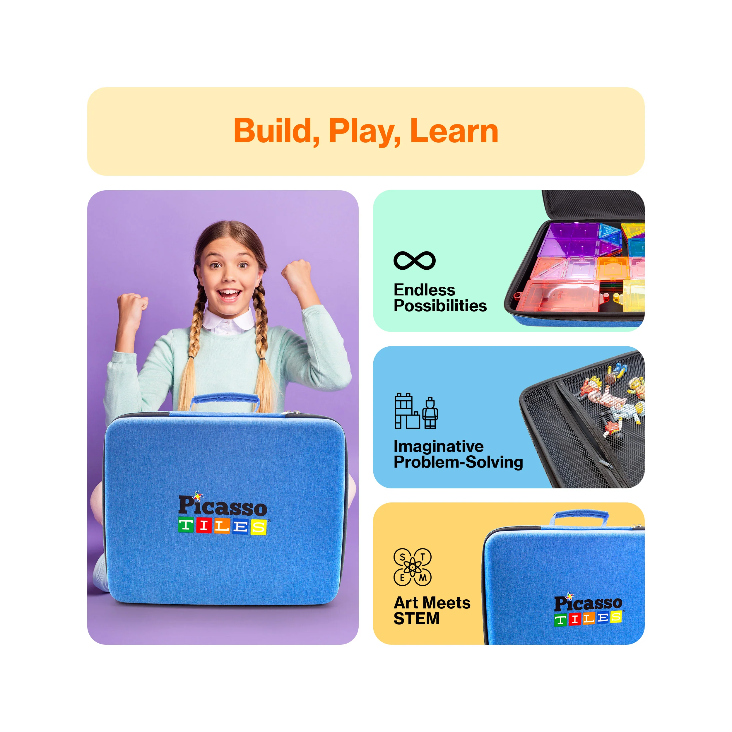 PicassoTiles Medium Storage Case (SKU: PTA101) is a water-resistant, Oxford cloth organizer perfect for storing and transporting STEM toys like magnetic tiles, building blocks, action figures, cars, puzzles, and more. It keeps toys safe, secure, and easily accessible, whether at home or on the go, offering a convenient solution for organized, imaginative pretend play.