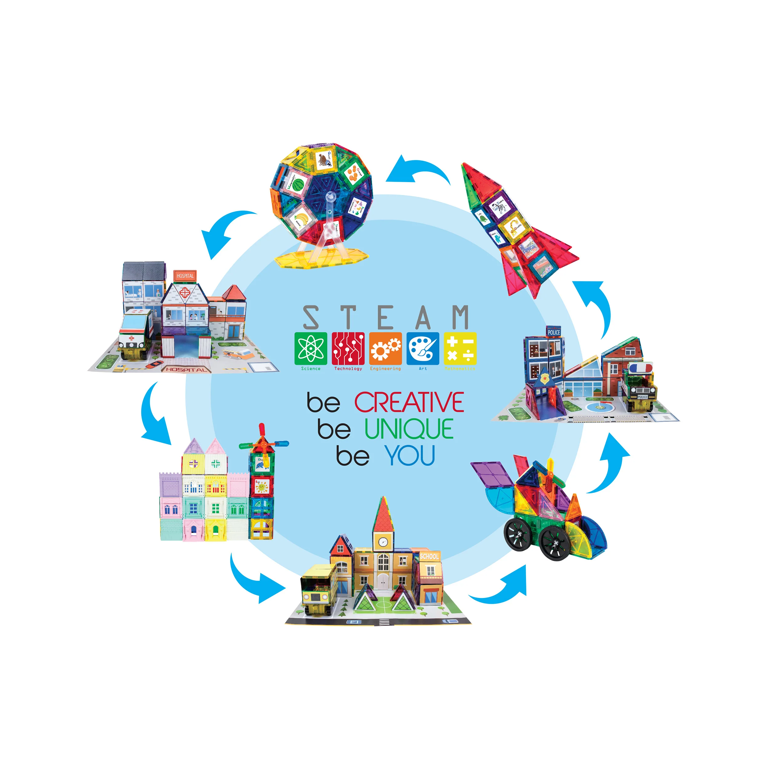 PicassoTiles 3-in-1 School, Hospital, and Police Station Magnetic Tile Building Set