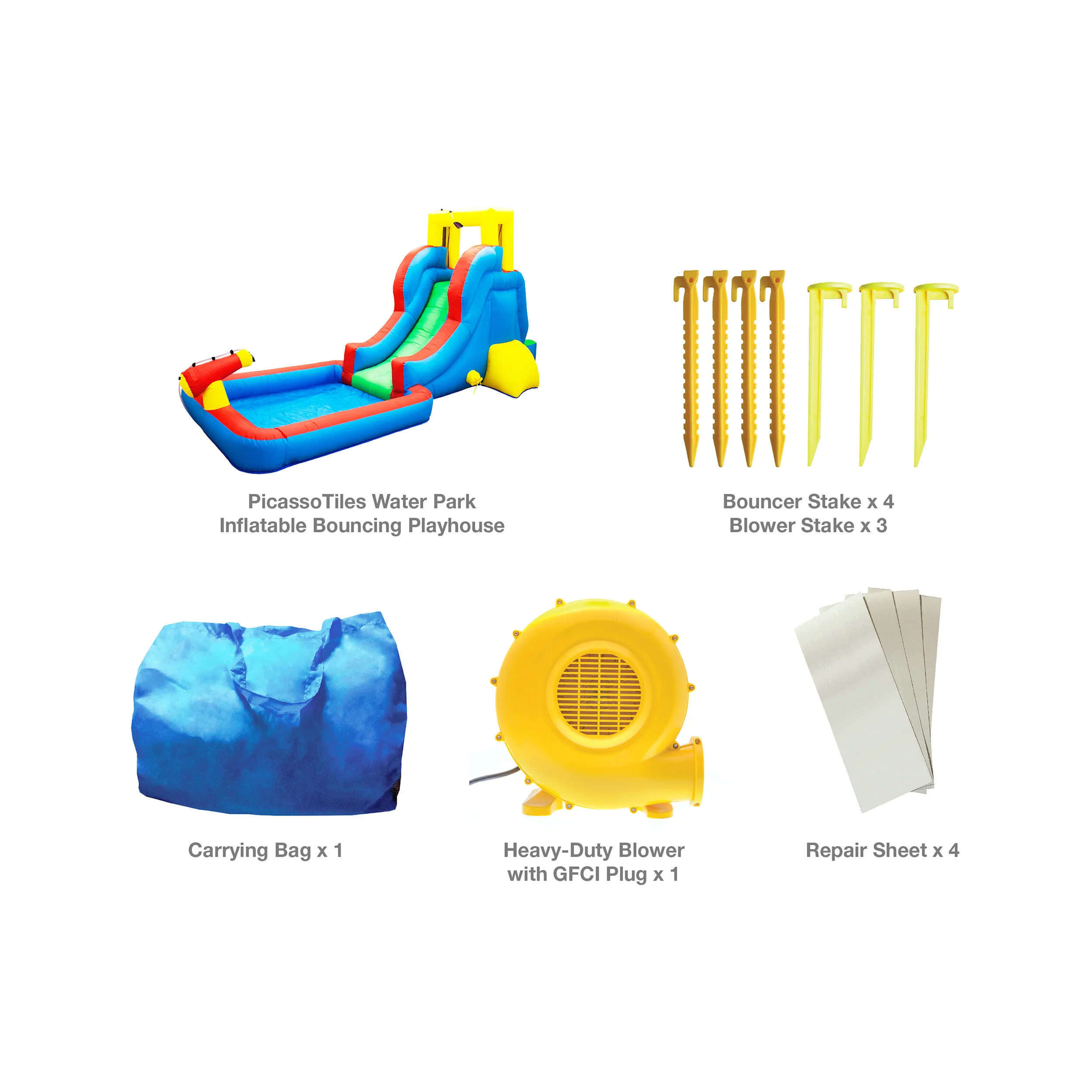 PicassoTiles Inflatable Water Slide Bounce House w/ Pool Area