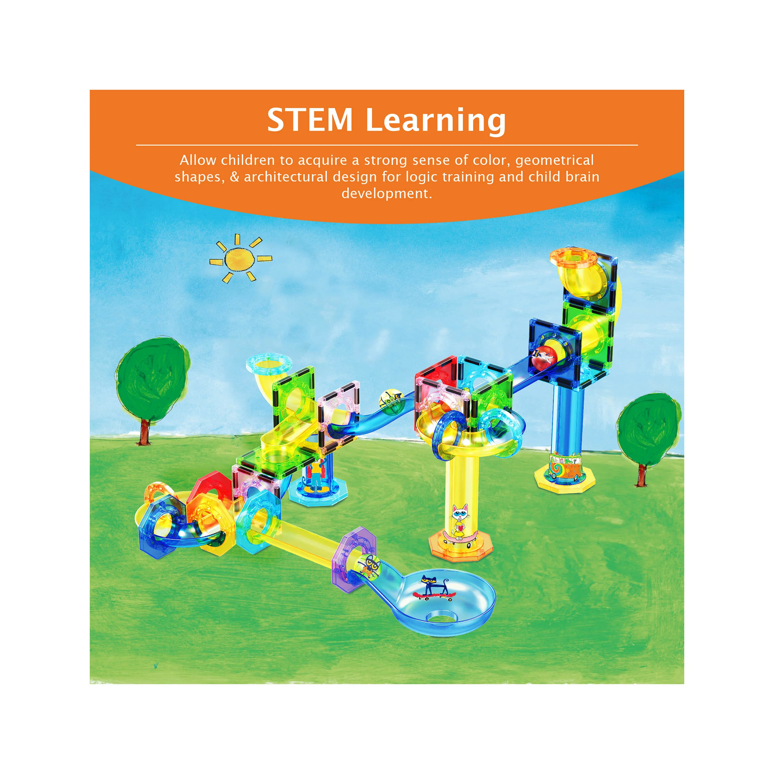 PicassoTiles Pete the Cat Magnetic Marble Run Playset - 62 Pieces
