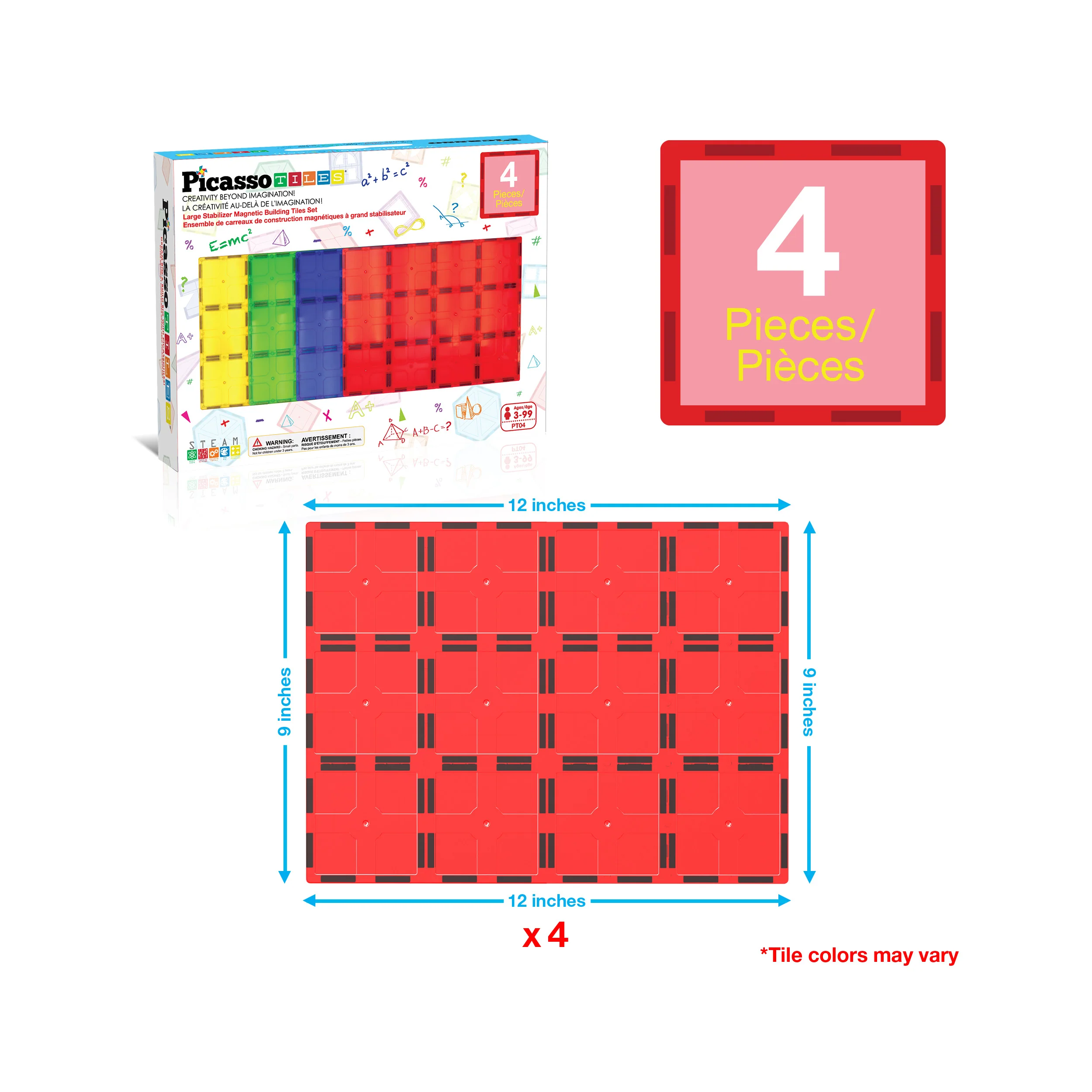 PicassoTiles Jumbo Magnetic Tile Base Plates (PT04) includes 4 large stabilizer plates designed to support bigger builds. Create stronger towers, wider layouts, and sturdy building platforms for castles and STEM structures. Helps kids build larger designs with more balance and confidence. Ages 3+.